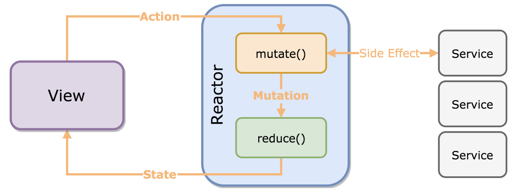 - Unidirectional : View는 Action만, Reactor는 State만 보낸다 !