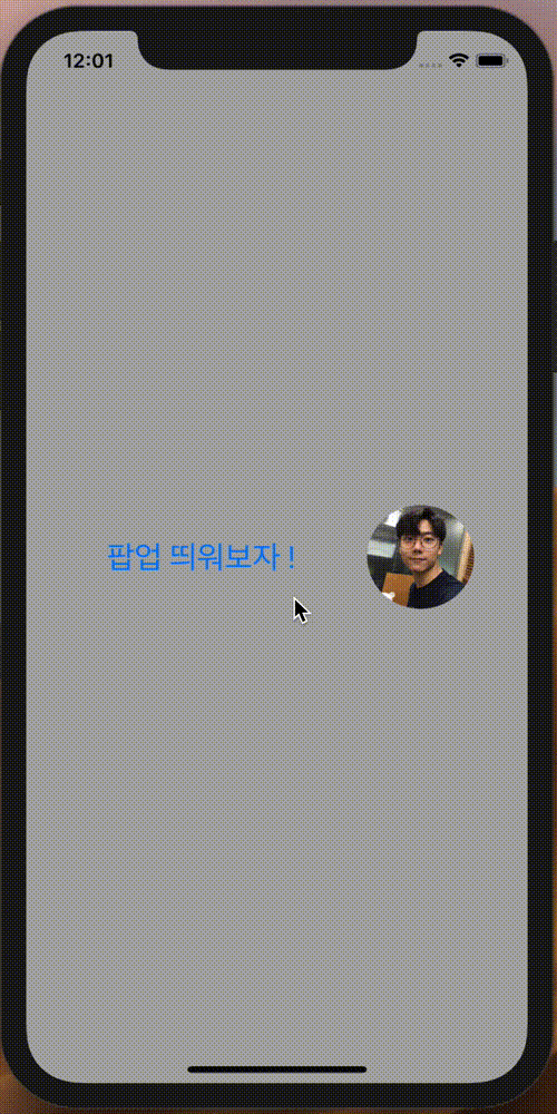 버튼을 클릭하면 UIImageView 아래에서 Popover 되도록 코드를 작성해 보겠습니다.